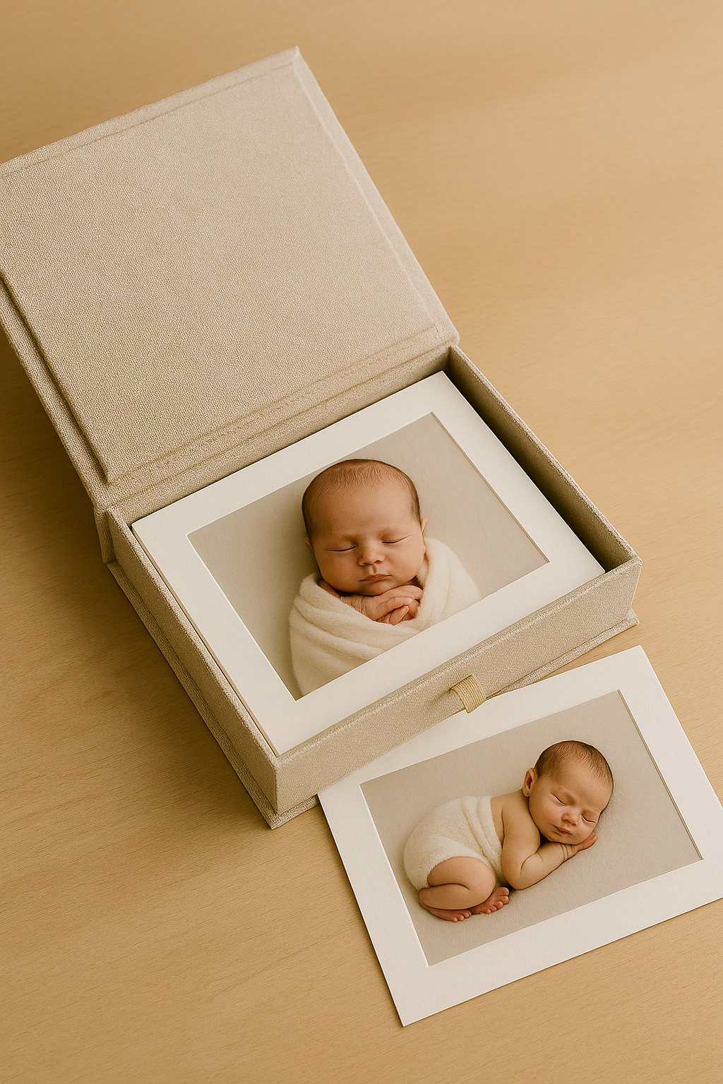 Soms is de puurheid van een print alles wat je nodig hebt. Deze collectie draait om de linnen Fine Art fotobox: een handgemaakte linnen bewaardoos met jullie favoriete beelden op museumkwaliteit papier geprint. Het is een collectie die je erbij neemt op zondagmiddag, om samen met je kindje later terug te kijken naar hoe klein die handjes ooit waren.